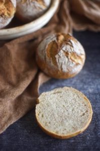 Den Teig in 10 Portionen von jeweils 90g teilen und rundschleifen. Die Brötchen mit dem Schluss nach unten in einem Leinentuch 1 Stunde gehen lassen.