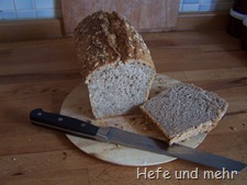 Das Brot schmeckt ganz wunderbar und es ist auch eine Woche nach dem Backen saftig geblieben.