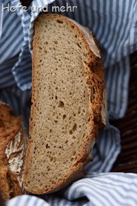 In this case it is used for flavour and tiny tangy flavour in this bread which contains about 70% Spelt and 30% rye. Such a rustic bread gain a lot from a tiny amount of bread spice added to the dough. I opted for a small amount which only underlines the complex flavours of the long and cold fermentation. But of course you are free to adjust this amount to your taste: use more for a stronger flavour or leave it away if you do not like it. The mixture can be varied as well. I normally opt for same parts of fennel, caraway and coriander seeds.