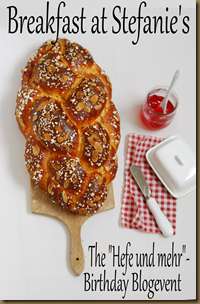For my Blog-Birthday-Event I got many terrific recipes. They range from No knead Breads over different breads with Nuts, Potato Breads to simple Sourdough recipes. I enjoyed reading the mails and Blog entries very much!